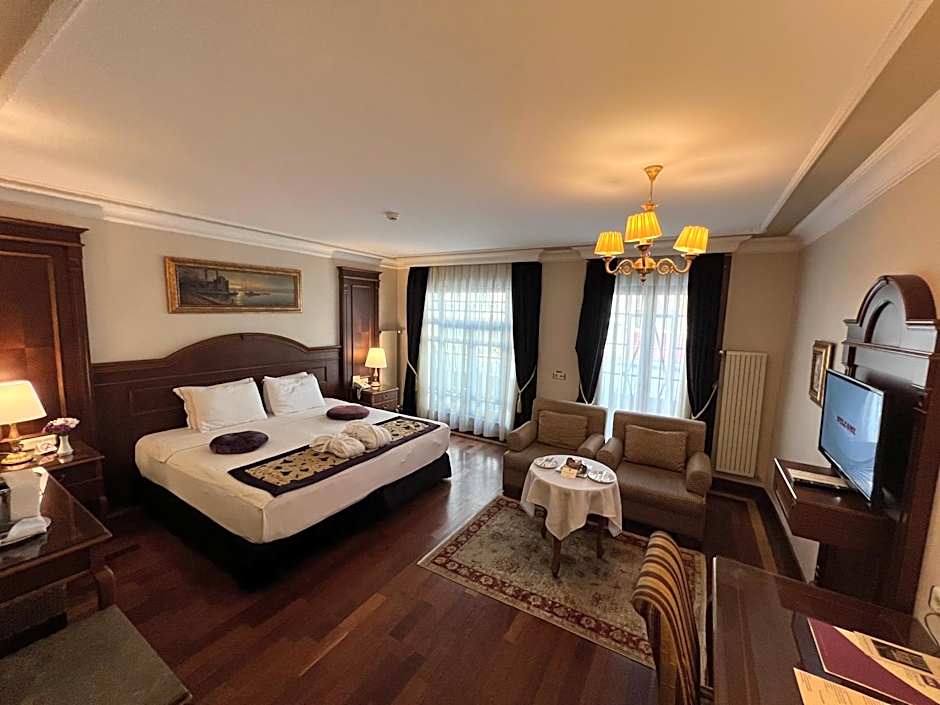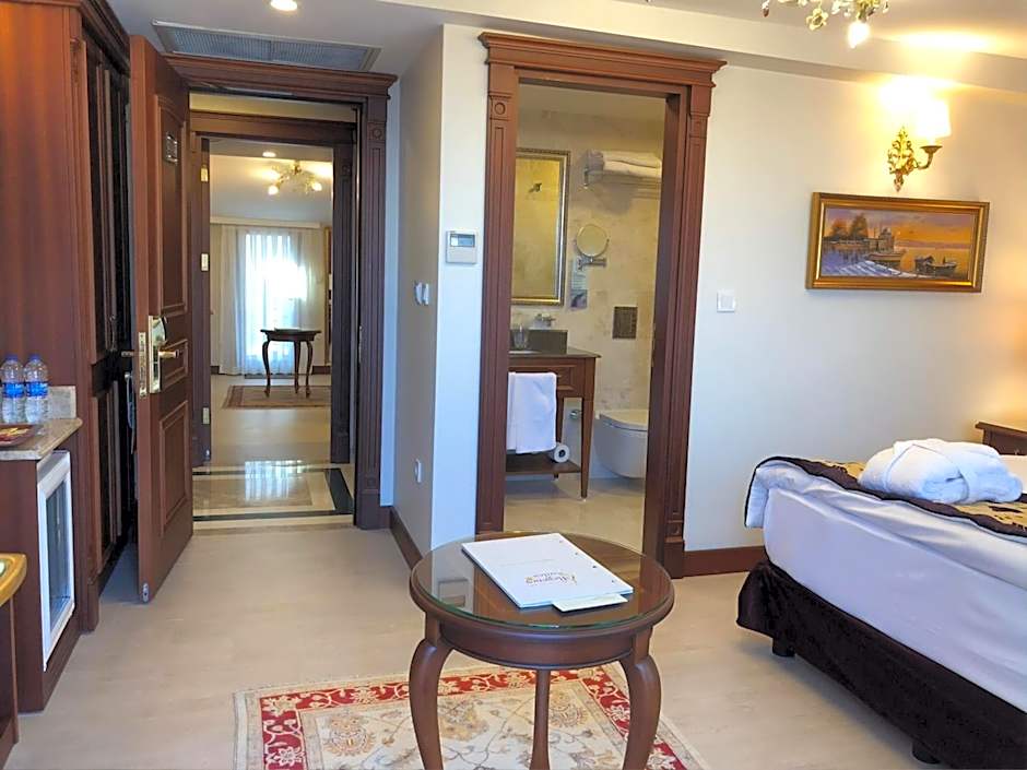 With a light decor, blackout curtains and antique-style furnishings, this suite offers a 32-inch LCD TV with satellite channels, in-room safe, free WiFi access and wired high-speed Internet access. A mini-bar, complimentary bottled water and tea/coffee making facilities are provided. The private bathroom comes with a jetted tub and a shower.